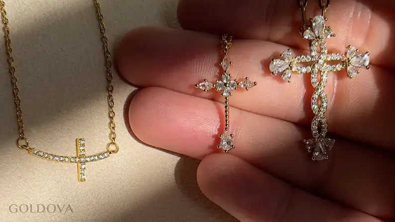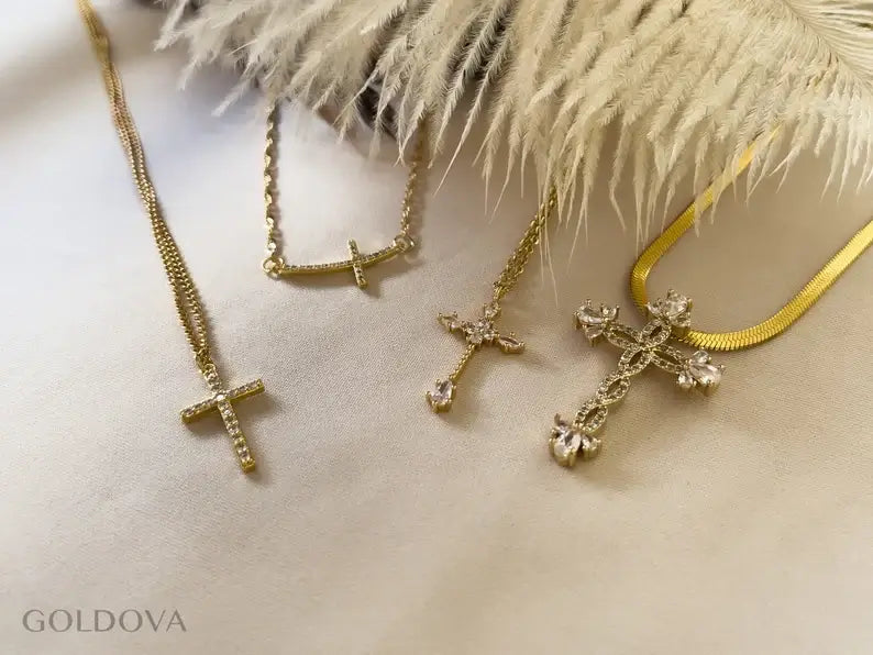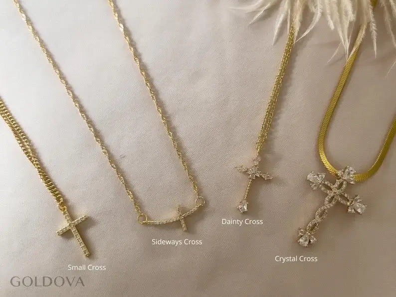 Gold Filled Cross Necklace, Crystal Cross Necklace, Cross Choker, Waterproof Necklace, Unisex, Dainty, Pendant, Crucifix Necklace Women