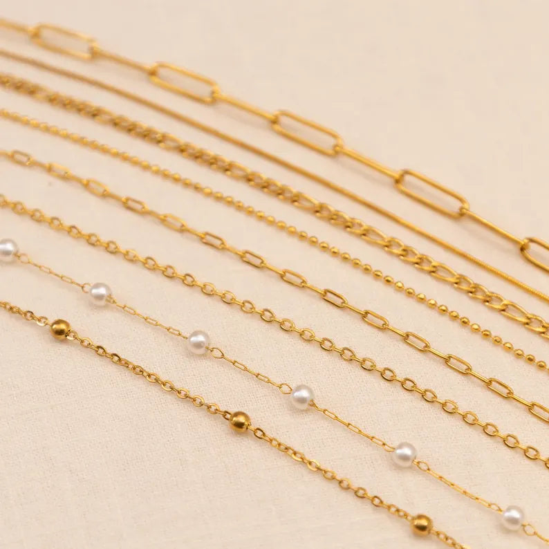 Crafted from durable stainless steel and finished with a thick layer of 18K gold, each chain is waterproof, non-tarnish, and hypoallergenic.