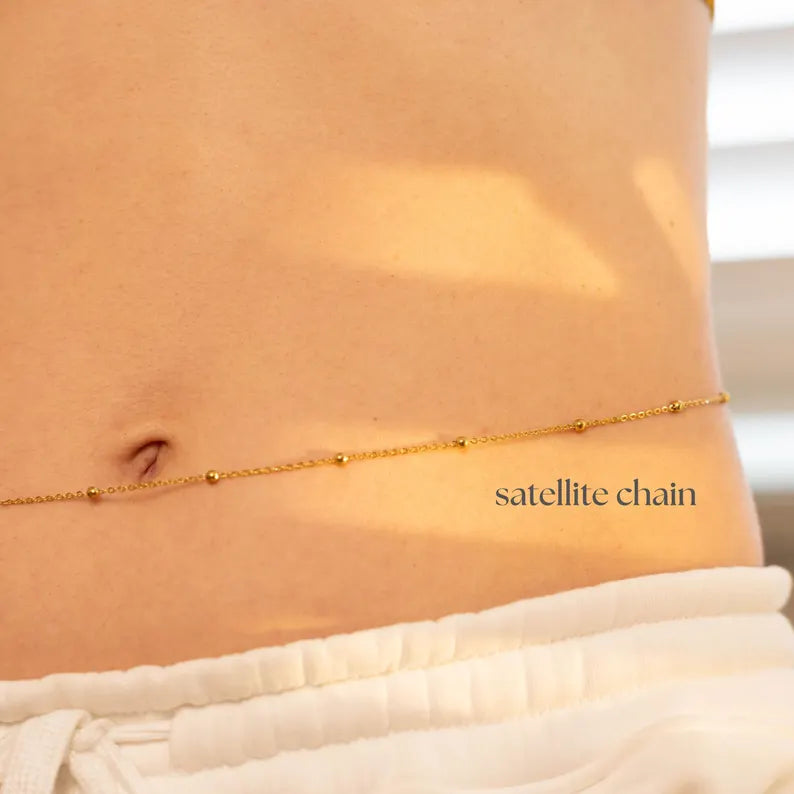 This 18K Gold Filled Belly Chain adds a touch of luxury to your beachwear or everyday style.