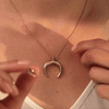 Designed with a graceful crescent moon charm, this necklace doubles as a secure ring holder—perfect for keeping your wedding band, engagement ring, or favorite ring close to your heart.