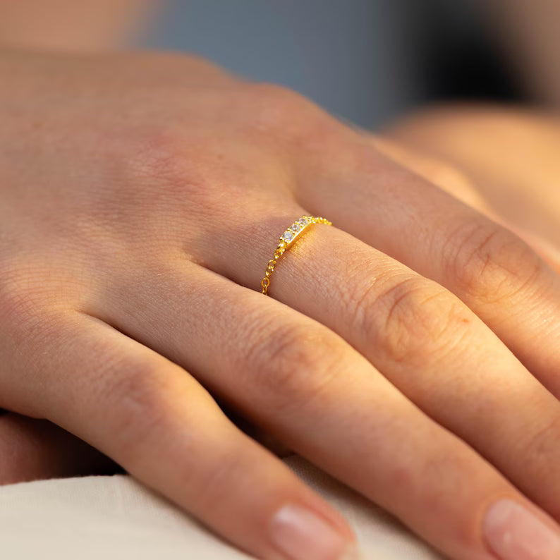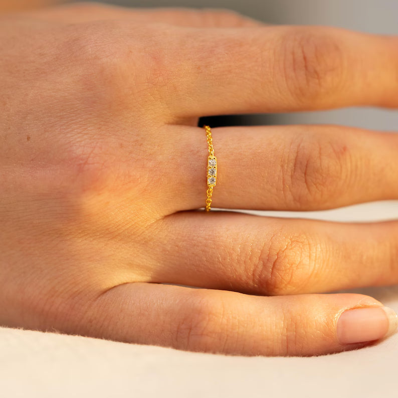 The Sterling Silver Trio Crystal Chain Ring makes an ideal gift for someone who loves understated elegance and timeless beauty. Whether it’s for a birthday, anniversary, or a special occasion, this dainty crystal band ring is a thoughtful and meaningful gesture. Its minimalist design and symbolic trio of crystals make it a perfect way to express love, harmony, and balance. Packaged beautifully, it’s the kind of gift that will be cherished for years to come. Treat someone special or indulge yourself in this elegant piece of jewelry.