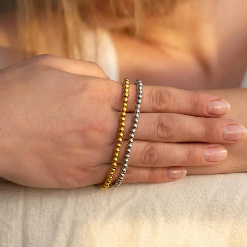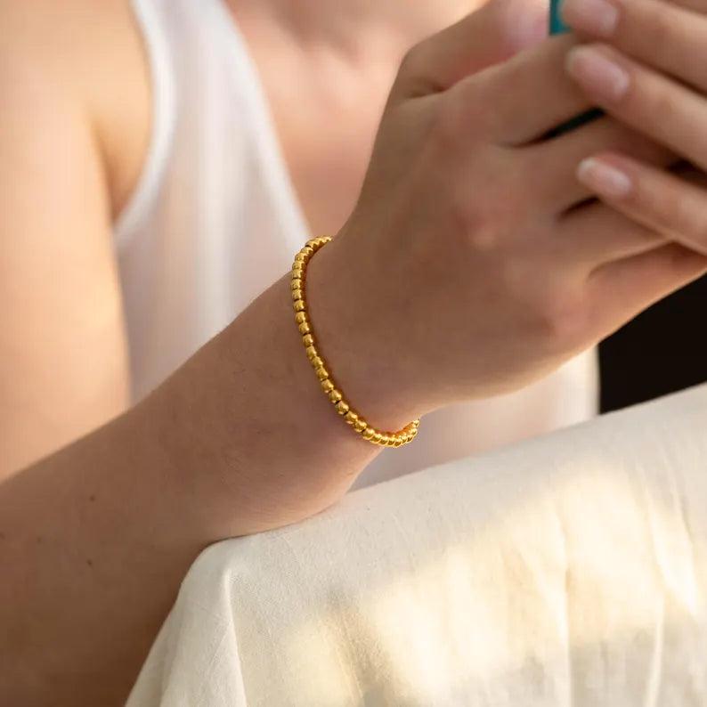 Handcrafted with a minimalist aesthetic, this dainty bracelet features smooth, polished gold beads that sit comfortably on your wrist. Whether you’re layering it with other pieces or wearing it solo, this bracelet adds a clean and elegant touch to your daily look—without worrying about wear and tear.